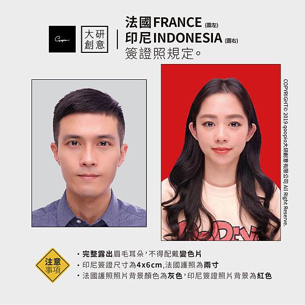 3.法國護照照片背景顏色為灰色,印尼簽證照片背景為紅色