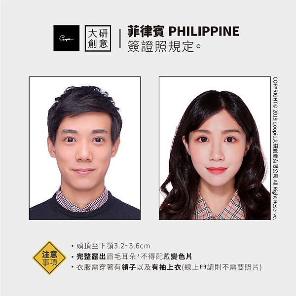 3.衣服需穿著有領子的以及有袖上衣(線上申請則不需要照片)